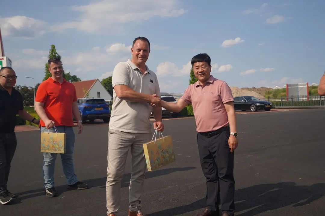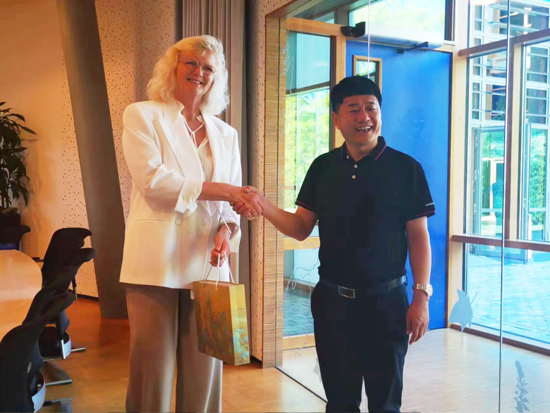 京鹏科技董事长、总经理顾本家向海外合作伙伴赠送象征中国传统文化的故宫文创纪念品