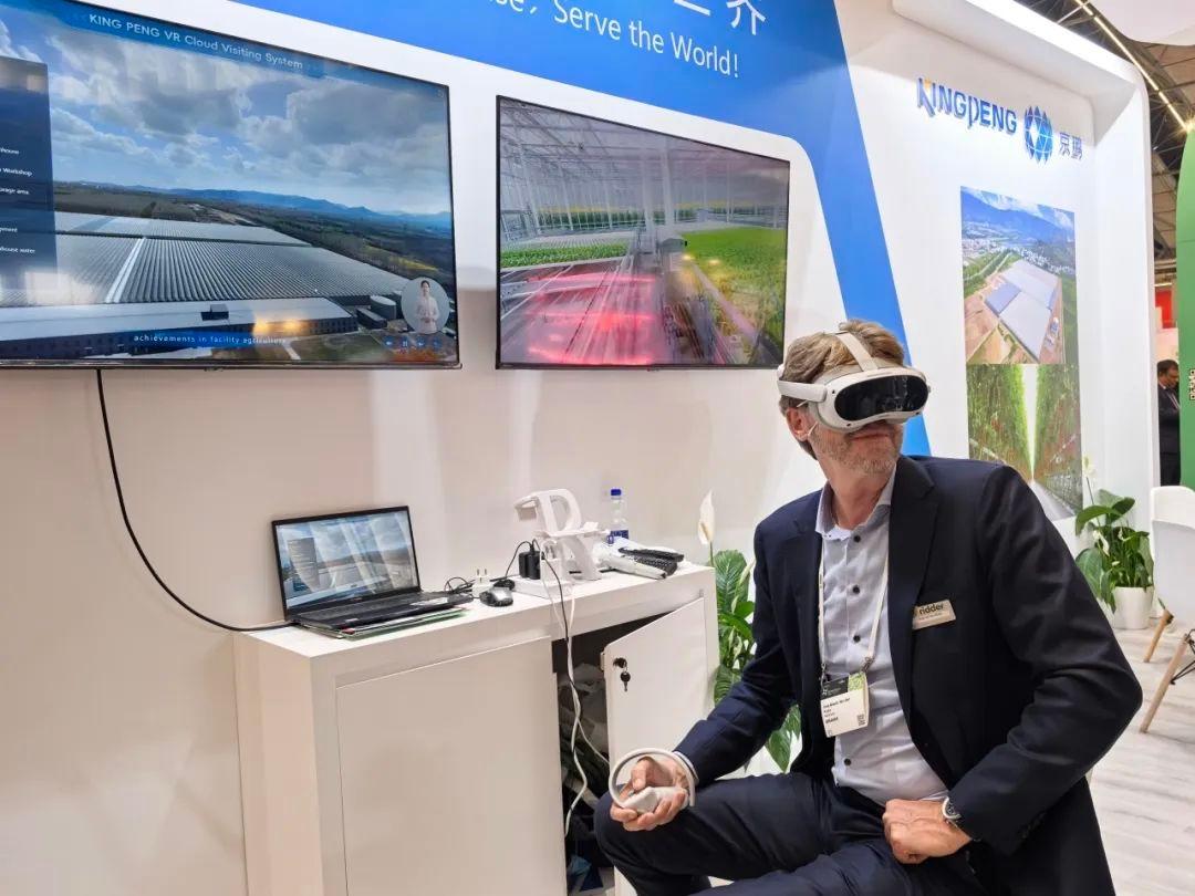 京鹏科技展位,来自全球各地的农业从业者、技术专家及企业代表纷至沓来,围绕智能温室系统、京鹏定制方案等展开深度洽谈,多家国际客户当场达成合作意向。其中,“温室项目全景漫游系统”引发高度关注,体验者以“第一视角”自由探索智能温室从精准灌溉、智能温控、自动化采摘及农产品溯源等全周期解决方案,不仅实现中国农业科技实践成果与全球市场的无缝链接,更彰显京鹏科技在设施农业领域的深厚积累。